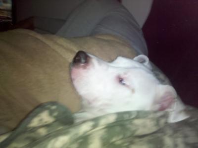 My husband and I got Bentley from a friend who couldn't keep him. The friend got him from a pound in Milwaukee WI. He loves to play tug of war with McDonald shirts. We love to cuddle. My husband is in the army so he is gone a lot, so Bentley is my protection, cuddle buddy, and entertainment. When you are having a bad day, he usually knows it and runs around in circles or wants your attention so you aren't focused on the negative. Your donation in any amount can help us reach out to more people who want to know the truth about pit bulls. Thank You for Your Support! Return to Pit Bull Homepage |