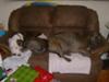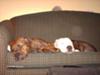 Benz is an American Staffordshire Terrier mixed with a Red-nose Pitbull. He is 7 years old and we have had him since he was a puppy. He acts like he still is a puppy,wanting to sit on your lap and play all the time.He is a very energetic dog most of the time.His favorite game is ball, he will chase that ball and keep bringing it back for hours on end,he wont even put the ball down to pee,he does it with the ball hanging out of his mouth. Benz is mostly white with brindle spots and his markings look like he is wearing a tuxedo complete with tails and white gloves. He is a very vocal dog unlike his partner Lexus,with whom he has fathered 32 puppies,now he is neutered. Lexuz is an American Pitbull,she is all brindle and a gentle soul. She is 8 years old and is a little overweight,but very beautiful. Lexus is a quiet dog who only speaks when needs too. Lexus loves to swim,she is our water baby!! She has had 32 puppies with Benz and is now spayed. They can live their old age out together in our home. They are an important part of our family. We love them both dearly. Return to Pitbull pictures archive July 2010. Your donation in any amount can help us reach out to more people who want to know the truth about pit bulls. Thank You for Your Support! Return to Pit Bull Homepage |