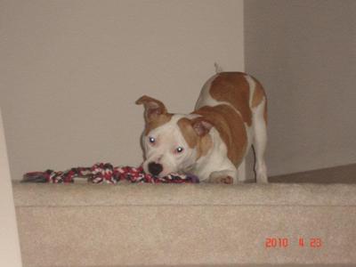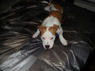He adapted to our family of five just perfectly. He is great with the little kids, and great with the cat. He loves to swim the river with me and go for hikes, walks and typical errands. Colby is our first Staffordshire Bull Terrier/pitbull and we are sold on this breed. We are even considering adopting another companion of the same breed for him. These are the best dogs ever!!