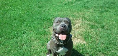 Element is a 4 yr old Blue Nose. He and my 9 yr, old son are like brothers. They sleep together every night. When Mason is gone to his Dads on weekends, Element walks around like he lost his best friend. It is the most pathetic thing I have ever witnessed in a dog. Our pibble has also showed a strong fondness for one of our cats, Beetlejuice and our Jack Russellx. If the cat is laying on the couch, he is often used as Elements pillow. If he gets down on the floor to lay, Element is sure to follow. Daisy the JRx and Element will play until they are both worn out. Element is gentle with her, while she loves to grab hold of his jowls and ears showing no mercy. He is my snuggle buddy and one of my children. I cover him up with his blanket and kiss him goodnight just like the kids. He is the love of my life. He holds a very special place in our hearts.<3
