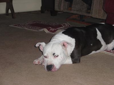 Jada had one day left at a local dog pound....i had recently lost my pom of 15 years to nothing more than old age...he very peacefully went to sleep in my lap here at home, he had been a rescue 12 years earlier. Needless to say my significant other went to the local landfill with a friend and saw "smiley" a skinny white and black pit wiggling and wagging and of course smiling. He tried to adopt her on the spot but was told he couldn't because we lived in a neighboring county. He rang me up and I called our local dog warden she then called them and told them we were responsible and great pet owners and that dog should not be put down when we were willing to take her. They agreed and " Smiley" came home with Jay. I was little hesitant at first because prior to losing my pom the year before that Jay had lost his 14 year old chocolate Lab, again to old age. I found him a black lab pup which we adopted and named Black Jack. We weren't sure how the two would get along. Nonetheless we thought we'd give it a try. They have become the best of friends and 2 years later no fights, and no aggression issues at all. As a matter of fact they can't stand to be apart. With no assistance from the pound... I tracked down the original vet and ultimately the original owner. He had lost his job, then his home. Before he could find her a home she was picked up and he could not pay the fees. Her name was and is now Jada. She had been raised with his 3 kids. She is a real DIVA, and the sweetest dog I've ever had. She is protective of me and Jack and she is very submissive. And absolutely loves kids. My 2 year old grand son frequently gets in her crate with her. Through our adoption of Jada we have changed many of our friends, family and neighbors opinions of Pit Bulls. We love her dearly and if we had room I'd absolutely have more pits and plan to always have one here. She loves her belly rubs and massages. Thank you for the opportunity to share. Your donation in any amount can help us reach out to more people who want to know the truth about pit bulls. Thank You for Your Support! Return to Pit Bull Homepage |