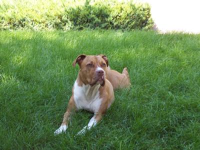 I got Max at a 7-11 store in April of 2003 when he was 7 weeks old. I was told he the last of a litter of 15 puppies and the owner had to get rid of them since he lived in an apt. I had a drug problem at the time and I do believe Max saved my life. How could I look at this sweet friend and not "be there" for him? How would I have felt if he had caught some disease because I couldn't afford to get him his shots? So, I cleaned myself up and have been clean since early 2004. I HAD to be there for this beautiful, precious dog who just adored me almost as much as I adored him. Max is a very gentle and sweet soul who is very vocal. His favorite words are, wooo, woooo, wooo, woooo! His talking is one of my favorite things about him(and he talks all the time)besides his sweet, gentle nature. His biggest goal in life is to "please." One day he knocked a squirrel I had been feeding off the fence and was within inches of having it in his mouth when I yelled "No" to him and he just stopped in his tracks and laid down. In 2005, I lost my 19 year old son to cancer and it was a very difficult time as one could imagine. I cried a lot and didn't know how I was going to make it through. Lo and behold if Max wasn't right there when I was sad and in tears over my son's illness, and then his death in March of 2005. Max would lay his big head on my lap or on my shoulder and look at me in such a way that I just knew he had to "feel" my pain as well and was trying to tell me everything would be ok. Max has always been full of love. He's a lover, not a fighter! Max was again there for me in 2007 when I lost my oldest son to suicide. He brought me much comfort in the most difficult times of my life. He is my constant companion. Max is the best dog I have ever had (first Pitbull), and I have had a lot of dogs over the years. It's hard for me to understand the bad reputation the pitbull has knowing how my Max is. He seems just the opposite of what their reputation implies. I owe my dog a lot and I will always be there for him as he has been for me.