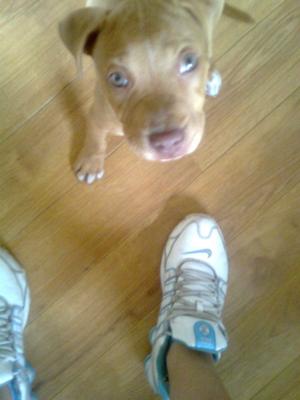 My Baby Buddy is only 8months old...I got him 2 weeks earlier then i should have at 4weeks. As he was neglected as a pup, he was also the runt. He was always a little clumsy on his feet n still is to this day. But we love him. The funniest thing was when he first saw rain he was trying to bit every rain drop that hit him it was cute... Just recently when i muzzled him for the first time he went crazy running around with his nose on the ground dragging it for about 15 mins trying 2 get it off... Of course i gave in... Another time he kept trying to attack his back leg because he was scratching himself and didn't realize.. He really is so funny... Click here to read or post comments Return to Pitbull pictures archive August 2010. Your donation in any amount can help us reach out to more people who want to know the truth about pit bulls. Thank You for Your Support! Return to Pit Bull Homepage |