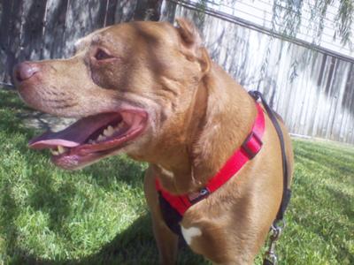 My Zeus is now 7 years old. I got him from a co-worker's son when I was looking for a big dog--actually I wanted a Rott--since I am a single woman living alone in a big house. I had him bring Zeus over a few times to meet and play with my other dog, a 25 pound Schnauzer terrier mix named Nikki- to see how they would interact together. The first time Zeus bounded out of his backseat, I was in love!! He has the prettiest really light brown, I guess more hazel colored eyes. And he was huge!!! Even though he was so big, at the time about 75 lbs, I wasn't afraid of him. He was very friendly with me, and after a few shy starts, he and Nikki played like best buddies in the backyard at each visit. I officially took ownership of him on July 4, 2005- best choice I've ever made. He's my big lovebug. He is extremely protective and possessive of both me and Nikki, but he's just a really big baby with me. He loves going on long walks and laying on my feet whenever I'm working on something or studying. I absolutely adore him. Now he's about 120 lbs and any and everyone is scared to death of him, but I dont care. He's my Zeus!