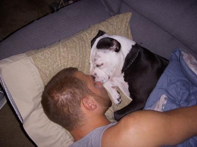 Back in 2008, my boyfriend was dead set on getting a pit bull and I immediately opposed it. "Absolutely not!" I said to him. However, he did not listen. He continued to search the internet for the one he wanted and soon after found him. I refused to even look at the dog's picture and continued to say no. So one Saturday evening my boyfriend calls me and says "I bought him." And I was extremely upset. Though I have always been an avid dog lover, I told him that I wanted absolutely nothing to do with this pit bull. I went on and on about how I wasn't even going to pet him. Long story short, my boyfriend comes home and said "He's here." And as I was laying on the couch facing away from them I went on to say how I don't care, but eventually the curiosity killed me and I turned around... When I turned around I saw the cutest puppy I had ever laid eyes on. He was only 7 weeks old. For some reason I was expecting to see a beast walk through the door. He was completely off balance and wobbling all over the place. I sat down on the floor next to him and caressed him and stayed there for about 2 hrs. just watching him sleep. I fell in love with the little guy and soon after became obsessed with him. My boyfriend decided to name him Kango. Fast forward to 2010, I have throuwn him 2 birthday parties. (He's now 2 1/2 years old.) I created his own Facebook page (Kango). I purchased pet insurance. I bathe him twice a month and I carried my 50 lb baby in my arms up and down the steps during the winter so that he wouldn't get any salt in his paws. He became my little child and I am Kango loves to lay around. Yet he's always in the mood to play. You would think a pit bull would want rope toys and tires, but not him. He loves fluffy toys and has a thing for socks. His funniest trait is that he sighs a lot. He does it about ten times a day. He also makes pig-like noises--lol! He adores attention and is extremely lovable. The minute someone walks through our door he goes into his basket of toys and brings them one. He has won over every heart that has encountered him. My Kango baby has become the love of my life. I kiss him about 50 times a day. However, every now and then when I do so, my boyfriend looks at me shaking his head and says "But you didn't want him". He teases me constantly about that I know I will never live that down. Kango has taught me that the pit bull stigmas are truly sad misconceptions and that one should not judge a dog based on its breed. Ultimately a dog's temperament is a reflection of its owner. If you train you dog properly, raise him well and love him unconditionally, you should have no problems. Ironically, I am now a pit bull advocate. I feel you get the best of both worlds. You feel protected in their presence because they're extremely loyal to you and yet they are little softies that give such unconditional love. It is truly sad to see how this wonderful breed is depicted in society. I hope more and more people open their hearts to pit bulls and give them the love they so deserve. To know me is to know Kango, A.K.A.Piggy Boy, because he is a major part of my life and I simply adore him. I cannot begin to fathom life without him. I love you Kango!!! Return to Pitbull Pictures Archive September thru October 2010. Your donation in any amount can help us reach out to more people who want to know the truth about pit bulls. Thank You for Your Support! Return to Pit Bull Homepage |