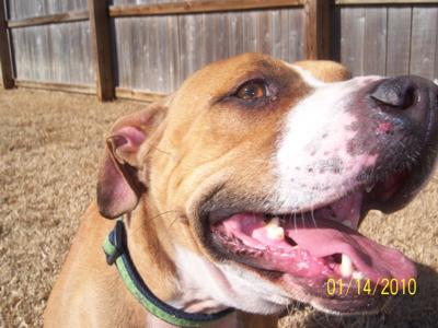 We got Nikki from our local animal control facility when she was just a little puppy- weighing only a fraction of what she weighs today. It is hard to believe that such a small, cute puppy can grow into such a large, gorgeous dog! She spends most of her days just lazing around... when she decides to play, she tires out pretty quick- she would rather just be lazy! She is a little overweight, but that just adds character to this big, beautiful lady. She loves to have her big belly rubbed and scratched, and she loves attention. She will go crazy begging for attention until you pay her some. My most memorable moment of Nikki would have to have been one night when she was sleeping in the bed with me (and by sleeping I mean taking over every single inch of space in the bed, leaving me with no option but to hang myself off the side!) I heard Nikki get up, which was unusual, and then I heard something I would have rather not heard- she was throwing up! To my surprise, she had thrown up a rock! It must have been a very delicious looking rock, because other than that, I have no idea why she would ever want to eat a rock. Click here to read or post comments Return to Pitbull pictures archives December 2009 thru June 2010. Your donation in any amount can help us reach out to more people who want to know the truth about pit bulls. Thank You for Your Support! Return to Pit Bull Homepage |