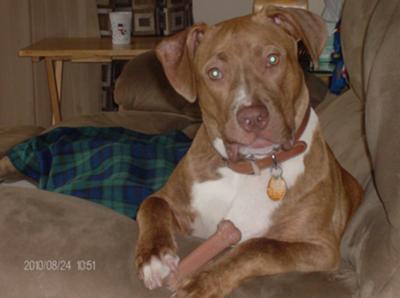 Rukus is a 9 month old red nose American Pit Bull. We got Rukus when he was 6 weeks old. I wasn't really ready to get a dog but my kids kept bugging me. A friend of mine had a litter of puppies so we went to look at them. When I saw Rukus I fell in love with him. We took him home that night and from there he has brought happiness and peace to our family. Our family is closer than ever. We do a lot with Rukus. We take him on walks, he goes swimming in the pool with us and he goes on outings with us. Rukus is funny when he runs around the house like he's crazy!!! We have wooden floors so he's slippin' and slidin' everywhere!! Rukus is very kind, playful, and gentle. He is very protective of us and friendly with others including animals. I am soooo happy we ended up getting Rukus. We love you Rukus!!! I wish Pit Bulls didn't have such a bad rap. They, just like any other dog can be fun & lovable. Return to Pitbull Pictures Archive September thru October 2010. Your donation in any amount can help us reach out to more people who want to know the truth about pit bulls. Thank You for Your Support! Return to Pit Bull Homepage |