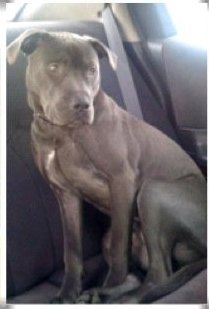 My name is Greynor. People call me Grey, Greynor Grayz or Sir Graynor. Personally I like Sir Greynor. It makes me feel important. I seem to attract a lot of attention where ever I go. I am a blue nose Pit & Lab mix. People always seem to stare at me and find it hard to figure out what kind of breed I am because of my unique look. I have a muscular body with long legs, a short shiny gray coat and floppy ears. I look intimidating but really am not at all. I LOVE to play! I guess that's what makes me so handsome and intriguing. The scars on my side are from when I was a pup. I don't remember how I got them or where I was before the Humane Society but I know it probably wasn't from anything I want to remember. No one knows where I came from but at 9 months old, I was sitting in my pen at the shelter and a couple came up to visit. I was just sitting there with my back faced towards the cage door trying to avoid the sound of all the other dogs barking. A girl put her hand up to the cage and I put my paw up to hers and embraced her fingers with my web feet in hopes a connection was made. They took me for a walk and then for a ride in the car to a house I now call home. Not much bothers me, I am very independent and can handle any dish given to me with out a whimper. I never mess in the house no matter how long I am left. After all, its my home now too. We have to live in a clean environment so I respect that for it is my haven too. Pretty much I have the run of the house. After all, my owners who rescued me from the humane society are ever so grateful to have me around to watch the house when they're gone to work or go out to eat so I am ever so grateful back. Mom likes to cuddle on the bed but dad doesn't like it. But when dads away, mom says ok and we cuddle. I am a simple boy. I don't need much to be happy. I like going bye bye in the car, I love socks & I love affection. At bed time, I sigh and moan when I'm given bed time love. Life is great! I love being a pit bull ! I am proud of my race ! I hate the way people can abuse us for their own personal gain - whatever that may be. To me, they need to be kept on chains.
